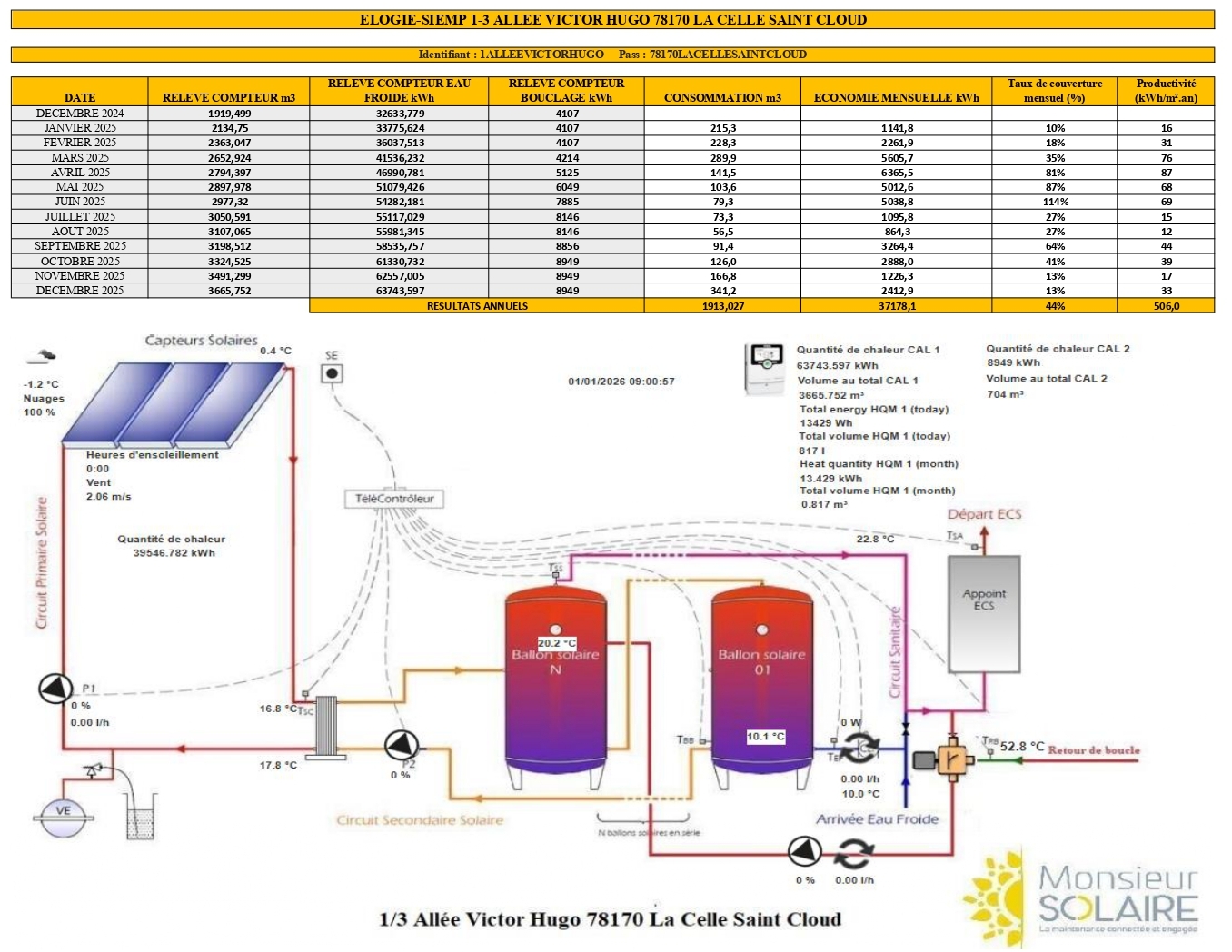 La maintenance connectée permet une supervision en temps réel de l’installation. Le télé-suivi permet une supervision fiable, avec envoi mensuel des productions solaires et besoins d’eau chaude sanitaire.